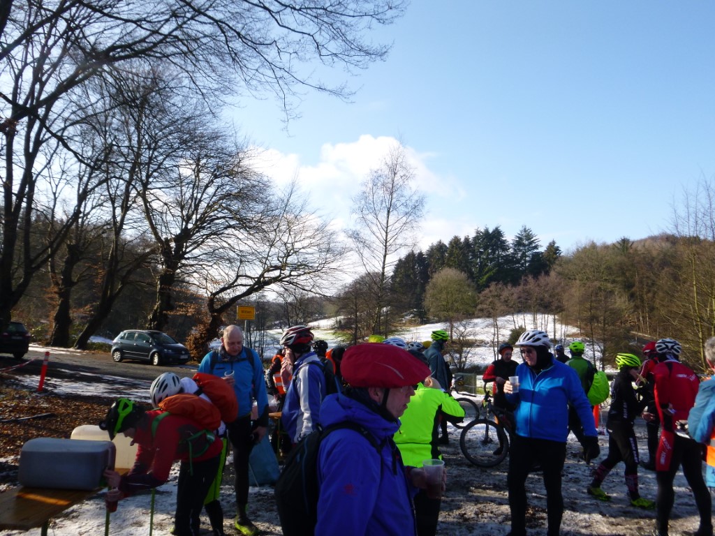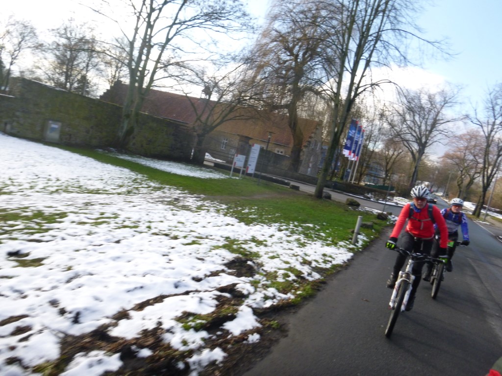 Die Anfahrt war kurz und schnell erledigt. Am Startort trafen sich wieder die üblichen Verdächtigen, Bärbel war nicht da, dafür kam Gerd dieses Mal. Wir fuhren gemeinsam los und nach rund 5 km teilte sich die Gruppe. Susanne, Silvia, Barbara und ich fuhren die 60er Runde, die anderen nahmen die 70er unter die Räder. Es waren diesmal mit 541 Teilnehmern nicht so viele Biker wie sonst, vielleicht war es dem morgendlichen Frost geschuldet. Auf der Strecke und an den Kontrollen war es dafür nicht so voll wie auf der Waltroper Runde in der letzten Woche. Aufgrund einer Brückensperrung war die Strecke umgeplant worden. Aber das schöne Muttental blieb erhalten und wir kamen an der Burg Hardenstein vorbei, was für mich neu war. Witten war und ist immer eine Reise wert, mit abwechslungsreicher Streckenführung und guter Verpflegung. TT