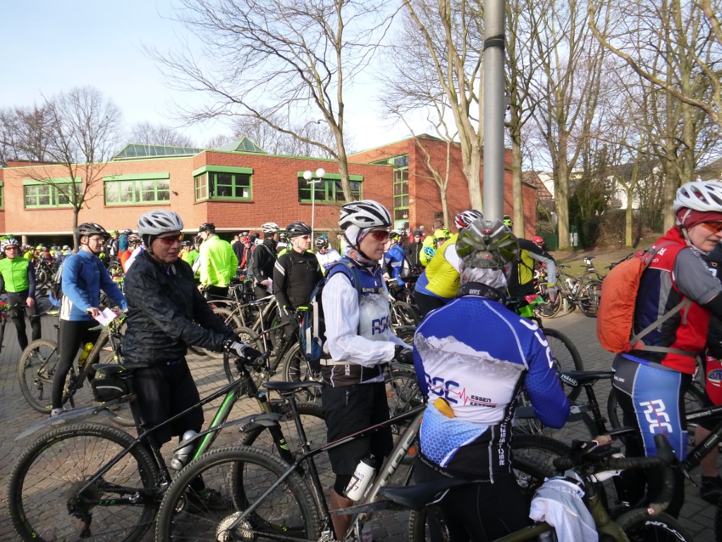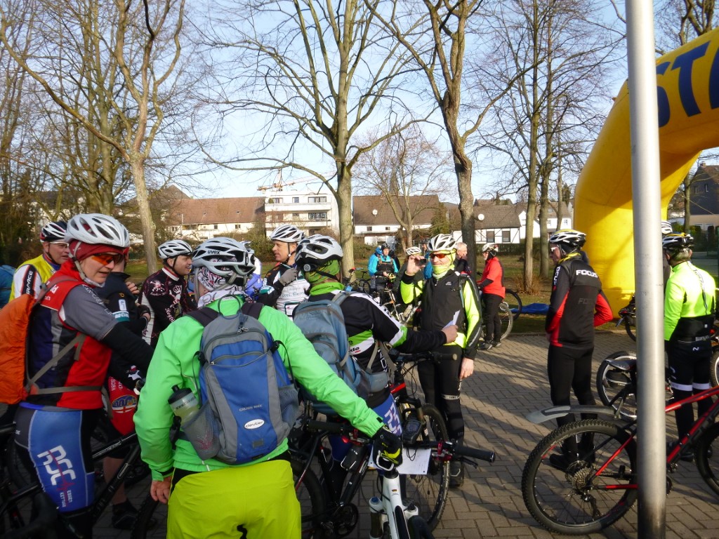 Am Sonntag zogen wir in Mülheim zu Dritt eine Runde in Richtung Rhein und nur Thomas war in Richtung Dortmund unterwegs. Das Wetter war Spitze und die Anreise recht kurz. 8 RSC-ler waren am Start. Barbara und Alex hatten heute großes vor und zogen nach Erhalt des Startstempels ordentlich am Lenker und drückten kräftig auf das Pedal. Bärbel hatte es auch eilig und war dann (für mich) nicht mehr gesehen. Der Rest ging auf eine kombinierte Runde, es sollte eine Genussrunde werden. Jochen hatte vom letzten Brevet eine leichte Erkältung mitgebracht. So rollten wir locker los und erfreuten uns am schönen Wetter. Der Anfang war noch recht asphaltlastig. Danach ging es dann über Wirtschafts- und Waldwege hinunter zur Ruhr. Das tolle Wetter hatte auch trockene Wege zur Folge und nur ab und an kreuzten wir eine große Restpfütze. Heute waren auch wieder die Kollegen unterwegs, die in der letzten Woche pausiert hatten. An den Kontrollen war viel Betrieb auf der Strecke herrschte reges Treiben. Nach 48 km und 730 Hm gab es im Ziel eine Bratwurst vom Grill. Die schmeckte bei Sonnenschein besonders gut. Das Rad musste zu Hause auch nicht aufwändig gereinigt werden, so macht Radfahren Spaß. TT