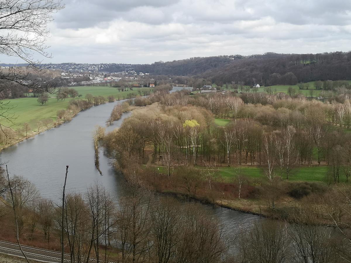 Am Samstagmorgen war die stürmische Aussicht auf eine Straßenrunde nicht so attraktiv. Rene und Kai hatten sich auch fürs MTB entschieden und am Gashaus trafen wir uns zur üblichen Mittagszeit. Nach der technischen Begutachtung des aktuellen Materials, stand die Frage nach dem Weg. Kai und Rene tendierten zur Wiederholung der Runde vom letzten Samstag. Also ging es durchs Forsbachtal, Richtung Flughafen, wir kreuzten die Meisenburg und fuhren in den Essener Wald rechts der Ruhr. Einige schöne, ziemlich steile Trails lagen am Weg, das ebike meisterte sie relativ locker. Bergauf Zusatzpower aktivieren zu können, ist eine nette Erfahrung und erspart kleine Fußmärsche. Nach der Abfahrt zur Ruhr hielten wir uns vorerst flach und nahmen dann noch den Anstieg zur Kanzel mit. Den Kaffee nahmen wir im Ruhrtal-Casino und Kai-Uwe hatte sogar Bedarf nach einer dicken Portion Pommes mit Currywurst. Die Runde mit ein paar Improvisationen lässt sich ausbauen. km |