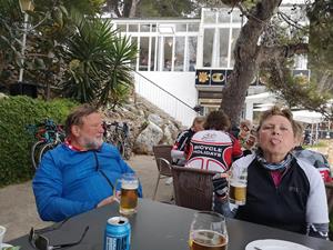 Die Kilometerleistung war demzufolge nicht sehr beeindruckend. Wie im Vorjahr hatten wir uns den Dümptener Radsportkollegen angeschlossen. Gerd hatte wieder das Sentido-Hotel reserviert, das uns jeweils freundlich, mit gutem Service und guter und variabler Küche umsorgte. Überschattet wurde die Veranstaltung durch den tragischen Tod von Heinz Sprenger, der in einer Pause an der Ermita de Betlem bei Arta vom Rad stieg und sich auf eine Bank setzte. Er fiel von der Bank, verlor das Bewusstsein und alle Versuche der Wiederbelebung scheiterten. Völlig unerwartet und mit 66 Jahren viel zu früh ist Heinz Sprenger aus dem Leben geschieden. Der Verlust ist riesengroß, natürlich für seine Familie, aber auch für die Radgruppe und für Mülheim, denn Heinz war ein engagierter Protagonist gegen Kindesmisshandlung und –missbrauch. Als „echter Schimanski“ hat er sich auch in seiner aktiven Zeit als Kommissar einen Namen gemacht. Der Schock in der Gruppe war groß, Entsetzen und eine gewisse Sprachlosigkeit überschattete die sportlichen Aktivitäten, aber es wäre nicht im Sinne des sportlichen, wie sozialen Aktivisten gewesen in der Schockstarre zu verharren. Behutsam kehrte der sportliche Alltag wieder ein und die Ausritte auf der Insel brachten Entspannung in die angespannte Situation. Das Wetter tat ein Übriges, die Aktivitäten zurückhaltend zu gestalten. In den Pausengesprächen wurde Heinz immer wieder zum Thema, geprägt von Respekt, Bedauern und Trauer um den Verlust, die auch diejenigen erfasste, die ihn nur wenig gekannt hatten. In den mehr als 30 Jahren in denen wir Mallorca im Frühjahr zum Urlaubs- und Trainingsziel gemacht haben, war diese Jahr das wohl denkwürdigste. Es war trotzdem eine schöne Zeit, die die beteiligten Menschen einander näher brachte und in der Auseinandersetzung mit dem tragischen Ereignis, dennoch eine positives Gefühl entstehen ließ. Inzwischen hat uns der profane Alltag wieder, aber die Gedanken wandern immer noch häufig zurück. km |