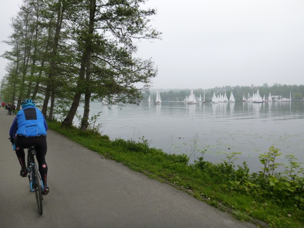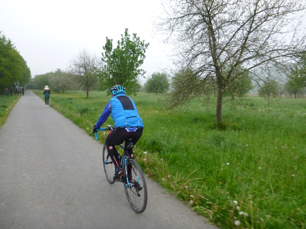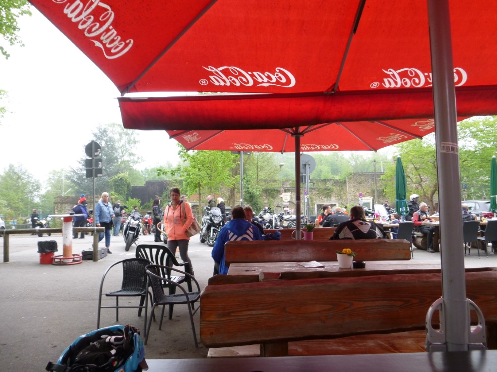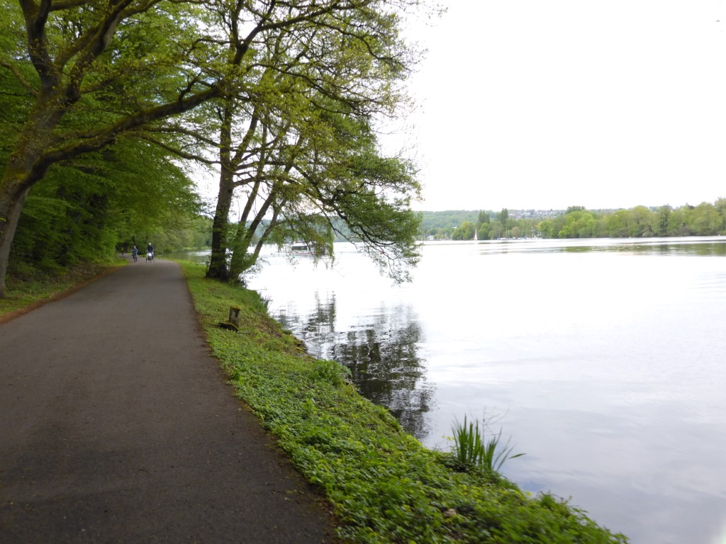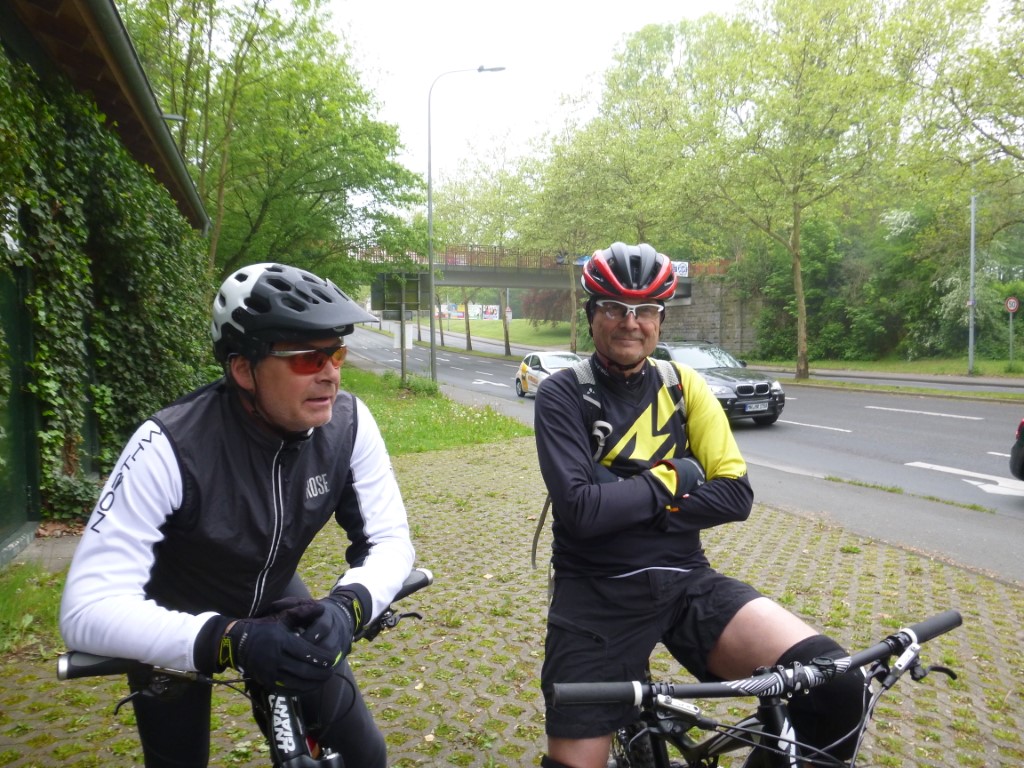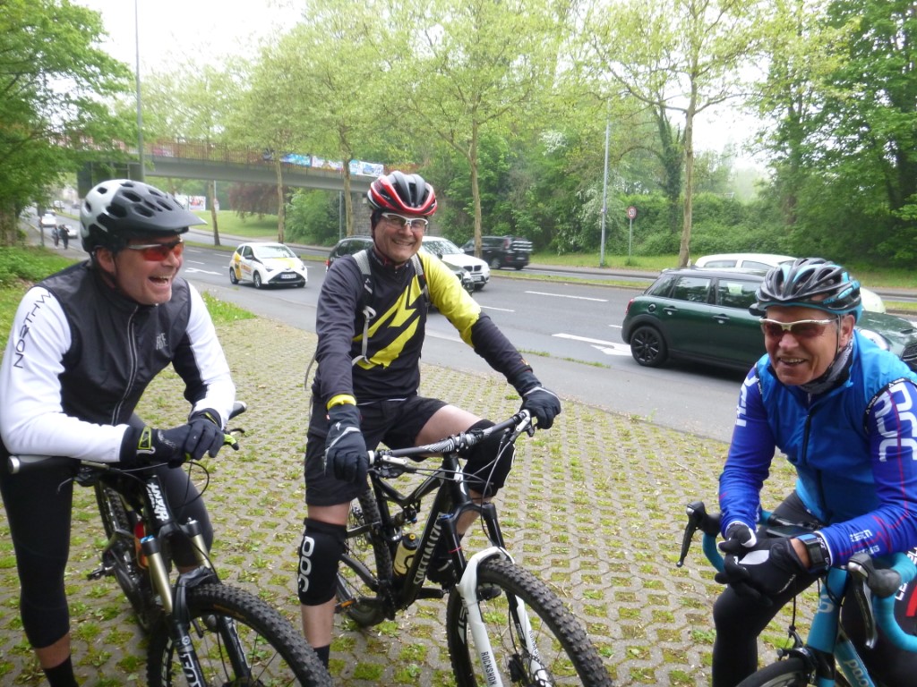Punkte stehen nicht auf dem Programm, aber ein paar Kilometer auf dem Rad sind nötig um die Laune hoch zu halten. Thomas und ich haben Sonntag das MTB ausgepackt und bleiben im Flachen. Die Runde um den See und am Ende über Kupferdreh nach Nierenhof führt uns zum Cycle-Café. Der Cappuccino ist lecker und Thomas gibt seine Geburtstagsrunde aus. Im Cycle-Café stehen hochwertige und interessante Räder, allerdings auch zu edlen Preisen. Der Rückweg stimmt weitgehend mit dem Hinweg überein, wir sind recht zügig unterwegs und haben halbwegs trockenes, aber kühles Wetter. Am 1. Mai sind am Treffpunkt Thomas, René, Kai und Klaus versammelt. Kai und René sind per MTB da, wir haben das Straßenrad genommen, Also geht es für uns zuerst auf die Fahrt in den Mai per Straßenrad und wieder in Richtung Cycle-Café. Die Sicht ist schlecht und der Nebel hält sich wacker und die Sonne will sich nicht sehen lassen. Der Kaffee am Haus Scheppen ist weit weniger lecker als im Cycle-Café, auch wenn er etwas günstiger ist. Egal, im Nebel ist die Pause erholsam und auf dem Baldeney-See tummeln sich die Segelboote und suchen nach einer Prise Wind. Die beiden Mountainbiker tummelten sich am Schloß Landsberg und testeten Nebenwege (siehe Fotos unten). km |