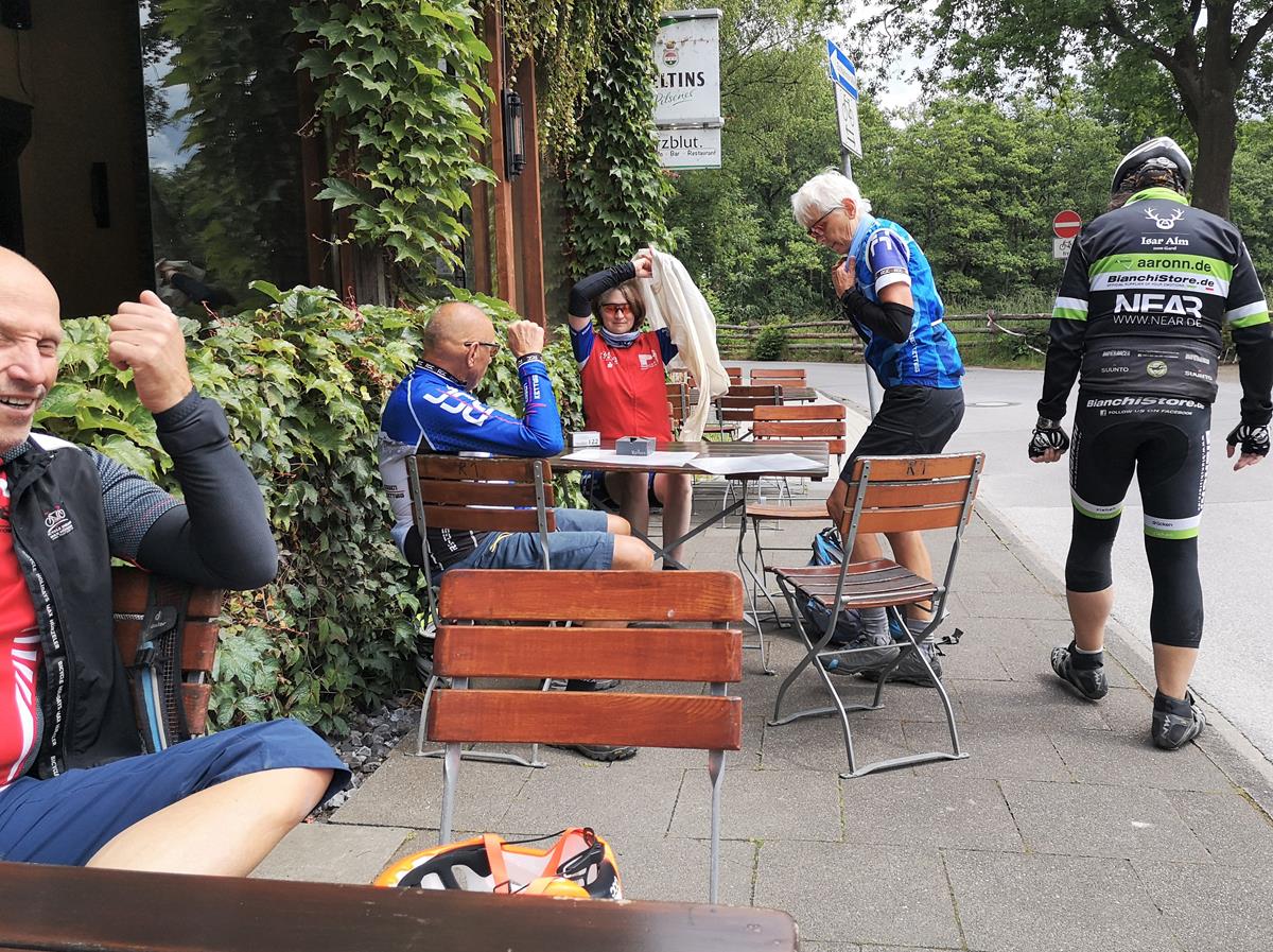 Am Samstag war die alte Viererbande auf dem MTB unterwegs. Alle sind noch weitgehend gesund und so fuhren wir auf „alten“ Pfaden durch den Duisburg/Ratinger Wald. Etwas mehr Sonne wäre nicht schlecht gewesen, aber auch so war es mal wieder schön in kleiner Gruppe auf dem Rad zu sitzen. Eine Abschlusspause bei Kaffee und Kuchen verkniffen wir uns noch und nach rund 40 km steuerten wir wieder Haus und Hof an. Am Sonntag hatte Gerd B. zu einer MTB-Runde des RSC eingeladen. Am Treff am Haus Ripshorst waren 10 Biker präsent. Die illustre Gruppe drehte eine sehr schöne Runde. Wir kletterten auf die Halde Haniel und durchquerten den Grüngürtel um Bottrop und Oberhausen. Gerds beste Ortskenntnis führte uns nicht nur autoverkehrsfrei sondern vielfach auch sehr schön trailig durch die Landschaft. Die Pause am Biker-Treff Grafenmühle machte uns mit den aktuellen Corona-Schutzmaßnahmen der Gastronomie vertraut. Der Cappuccino und auch die Waffeln waren jedenfalls gut und lecker. Zurück am Haus Ripshorst verblieb uns der Heimweg am Rhein-Herne-Kanal. Auch hier war es relativ schwach frequentiert und am späten Nachmittag waren alle wieder unfallfrei und gesund zu Hause. km |