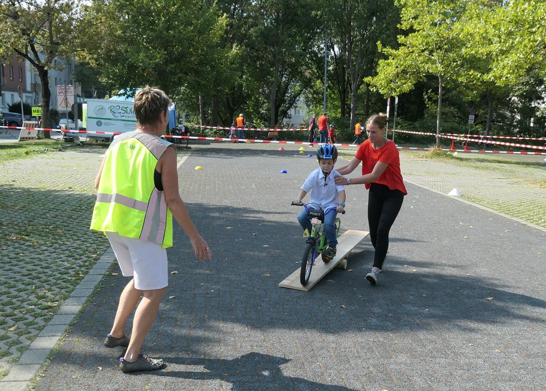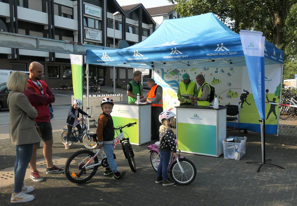 Eigentlich ist es jetzt schon Tradition am Ende des Sommers mit dem Mülheimer Sportbund ein kleines Radsportfest für 4 - 8-Jährige auszurichten – in Corona-Zeiten war es aber doch nicht so selbstverständlich. Insofern trudelte die Information nur wenige Tage vor der Veranstaltung ein und mit Hygiene-Konzept und Abstand wurde das „Rollende KIBAZ“ (Kinderbewegungsabzeichen) auf dem Parkplatz an der Südstraße bei strahlend schönem Wetter am Samstag gestartet. Jana Hartwich vom Mülheimer Sportbund hatte geplant und 50 Teilnehmer/Familien waren angemeldet und hatten sozusagen einen Termin bekommen zu dem sie für eine Runde auf dem 10-Stationen-Parcour eingeplant waren. Die Betreuer waren in 6 Zweiergruppen für bis zu 2 Familien zuständig und führten die radelnden Zwerge mit möglichst wenig Körperkontakt durch alle angebotenen Übungen. Würstchen und Getränke waren nicht im Angebot, aber da sich die kleinen Gruppen gemeinsam über die Stationen arbeiteten, war es eine angenehme Atmosphäre die einen fast familiären Charakter bekam und die kleinen Radler konnten individueller betreut werden, als es mit wechselnden Betreuern an den einzelnen Stationen möglich ist. Die Rückmeldung der Eltern, die zur Unterstützung einbezogen werden mussten, um zu viel Nähe zu vermeiden, war durchweg positiv und vermutlich hilfreich, denn der eine oder andere Rat für die Kurzen, ob es das Mini-Bike oder das Bewegungsverhalten anging, konnte mitgegeben werden. Allerdings sind die Betreuer mehr gefordert und als es nach 14 Uhr an den Abbau ging, wussten die Teilnehmer, dass ein schönes Stück Arbeit geleistet war. Als Prototyp für eine Radsportveranstaltung dieser Art, war das „Rollende KIBAZ“ ein schöner Erfolg, die trotz Corona Spaß für Kinder und Eltern bot und mit ein paar kleinen Stellschrauben auf jeden Fall wiederholbar ist. km