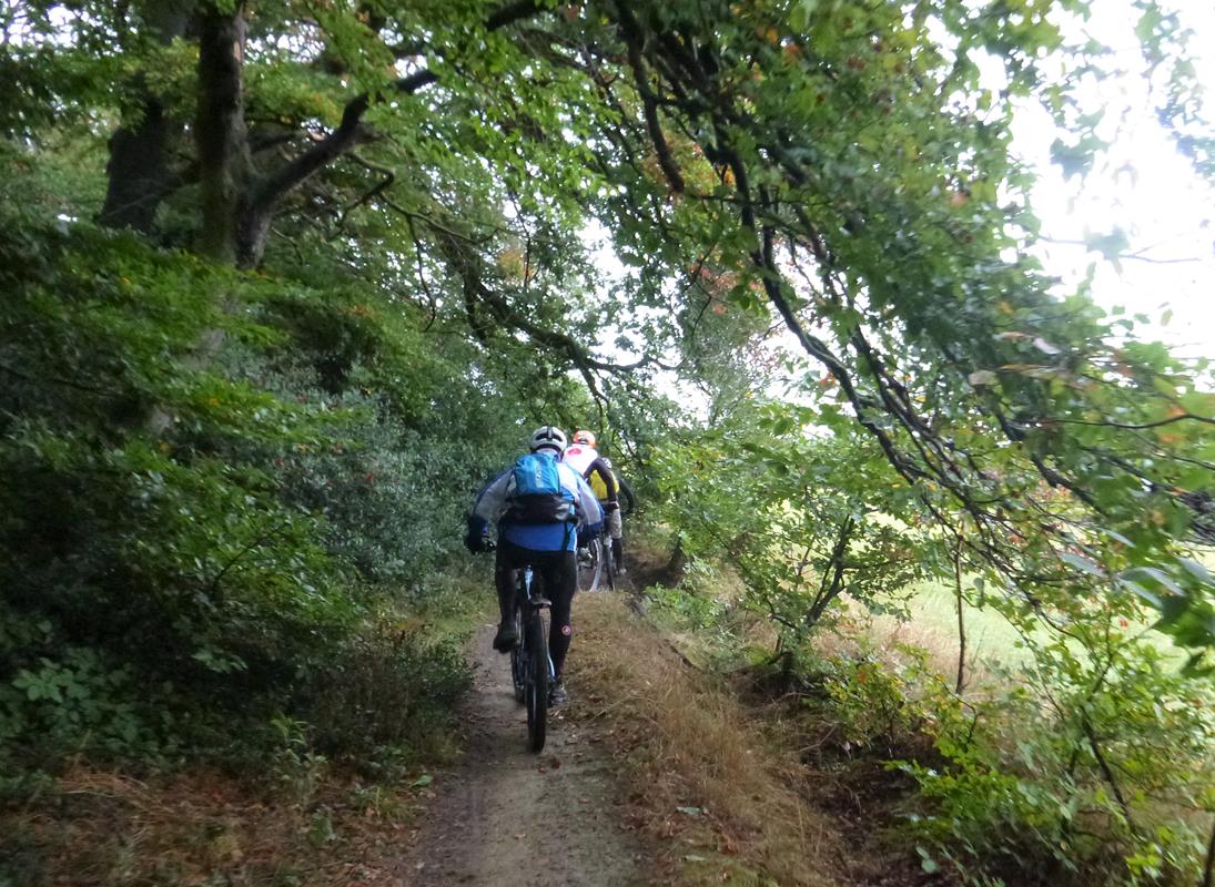 Das erste doch sehr herbstliche Wochenende war MTB geprägt. Eigentlich hätte die Kettwiger Hügeltour auf dem Programm gestanden. Die Veranstaltung ist der Pandemie zum Opfer gefallen, also wählten wir die crossige Alternative, deren Track Gerd vorgegeben hatte. Am Samstag war Rene beteiligt und wir drehten probehalber die Runde, die sich zwischen Mülheim und Kettwig bewegte. Das Wetter war unfreundlich und auch wenn nur ein paar Tropfen aus den schwarzen Wolken bei uns ankamen. Aber immerhin, der Test für die Herbstrunden war erfolgreich. Am Sonntag versammelten wir uns zu sechst an der Mendener Brücke als temporärer Treff der „Fette Reifen“-Truppe des RSC Kettwig. Der Schnack mit der Nachbarin und die Suche nach wärmeren Handschuhen führte zu meiner traditionellen Verspätung und ich musste erstmal hinterherfahren. Aber am Aufstieg zum Auberg war der Rückstand aufgeholt. Oberhalb vom Auberg ging es Richtung Mintarder Brücke und auf den kleinen Trails im Auberg fuhren wir im Zickzack bis hinunter zu den Pfeilern der Autobahnbrücke. Weiter über Asphalt zum Stoot, dort ging es wieder in den Wald und dann auf der Höhe Richtung Esel. Über die Strasse führte der Weg hinauf zur Kettwiger Höhe, durch den Wald hinab Richtung Heiligenhauser Strasse. Hinter der Bahnunterführung bogen wir aber rechts ab, um auf die Trasse zu kommen. Auf der Trasse bergab Richtung Kettwig, dann machten wir eine kleine Stadtrundfahrt durch Kettwig. Hinter Kettwig stand wieder ein kleiner Aufstieg auf die Höhen rechts der Ruhr an, die Abfahrt landete punktgenau auf dem Leinpfad, dem wir dann nach Mülheim folgten. Haus Ruhr-Natur war das Ziel für Kaffee und Snack. Nette Runde in angenehmer Gesellschaft mit knapp 40 km mit An- und Abfahrt. km