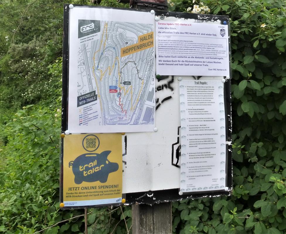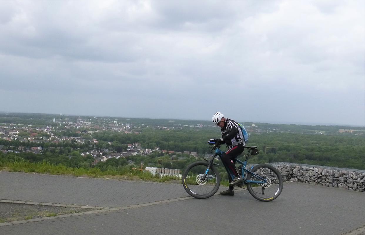 Das superlange Wochenende hatte Thomas mit einer Wuppertaler 115 km Schleife eröffnet. Müllers besichtigten Schafe auf dem Rheindeich und besuchten mal wieder die niederrheinsche Grubenlampe. Bei sommerlichen Temperaturen lohnte sich der Ausritt, allerdings waren doch eine große Zahl Mitbewohner unterwegs. Am Samstag hatten Thomas und ich die Zeche Ewald im Visier. Die Anreise meisterten wir mit dem PKW und arbeiteten 2-mal die Cross-Country-Strecke auf der Halde Hoheward ab und drehten eine Runde auf der Halde Hoppenbruch. Die rustikalen MTB-ler waren wohl eher auf der Halde Hoppenbruch versammelt, denn an jeder Kreuzung gab es kleine Gruppen in MTB-Kampfkleidung. Auf Hoppenbruch bewegten wir uns auf eher breiten Pfaden und drehten dann auf dem Rückweg die zweite Runde auf dem XC-Trail Hoheward. Die Runde ist gut zu fahren, obwohl nach langer Abstinenz auf schmalen Pfaden Gewöhnung nötig war. Am Ewald-Café kaufte Thomas Cappuccino und hinterließ seine Daten auf der Sammelliste. Den Cappuccino genossen wir dann auf der Bierzeltgarnitur. Sonntags war eine lockere Runde zu Dritt geplant, die wir im Duisburg/Ratinger Wald verbrachten. Hier nutzten wir auch ein paar Nebenstrecken abseits breiter Wege und hatten Spaß. Der Bachlauf zwischen Sechs-Seen-Platte und Rahm bot überraschendes Trailpotential und wir erinnerten uns an alten Runde in größerer Gruppe. Immerhin rund 40 km kamen zusammen bei der kreuz und quer Suche durchs Gehölz. km