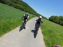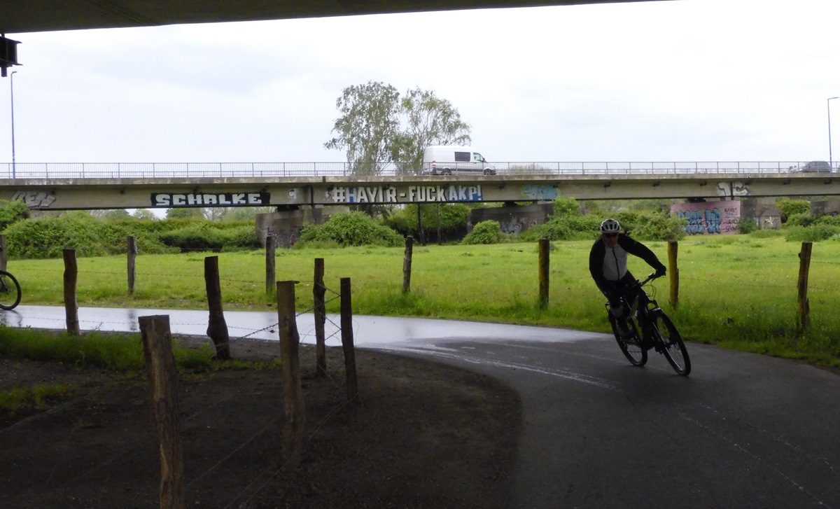 Die Ripshorster Runde über Kanal und RS1 taucht in der Statistik gleich zweimal auf. Nach dem Debüt mit CyclingDeutschland haben wir seither das Thema des Punktesammelns wieder ausgeklammert, dafür waren wir mit Lockerungen aus der Corona-Statistik erstmals mit Vereinsinitiative auf dem Bike unterwegs. Gerd hatte den Plan und zu fünft waren wir auf Tour, ab Heissen-Kirche im weiten Bogen Richtung Ruhr und die „Getesteten“ nahmen das gepflegte 2. Frühstück bei Franki’s am Stadtmitte-Hafen. Thomas hatte die Idee zu einer „Gravel-Bike-Runde“ über Trasse und kreuz und quer durch Velbert, meist asphaltiert, aber ohne Autoverkehr. In Hösel machten wir den Versuch Eis zu kaufen, aber die Warteschlange hätte jedem DDR-Wartekollektiv zur Ehre gereicht. Also kein Eis, dafür wichen wir vom Streckenplan ab und landeten prompt in einer Sackgasse. Der Weg führte früher entlang der Bahnlinie und endete etwa am jüdischen Friedhof – ab da ginge es dann über Trasse oder Wirtschaftsweg nach Kettwig. Ein sympathischer, sozial isoliert denken- und lebender Mensch hat den Weg sorgfältig gesperrt (siehe Foto) und ohne Streit führte der Weg nur zurück. Für die ebiker unproblematisch, die Bio-Biker mussten einen langen Anstieg bewältigen. Am Feiertag steuerten wir den Rhein an und wunderten uns über die doch weitgehend leergefegten Wander- und Fußwege. Alle ausgeflogen, weil die Corona-Bedingungen wieder Ausflüge und Kurztrips möglich machen? Wir wissen es nicht so genau. Immerhin ließ es sich so angenehm und ungestört radeln. Thomas hat seine 2. Impfung absoviert und pausierte bis zum Wochenende. Am Samstag hatten wir Haus Ripshorst zum Ziel und erstmals war Kaffee erhältlich. Ein Angebot, dass wir gern annahmen. Allmählich gibt’s wieder ein paar Anzeichen von Normalität. km |