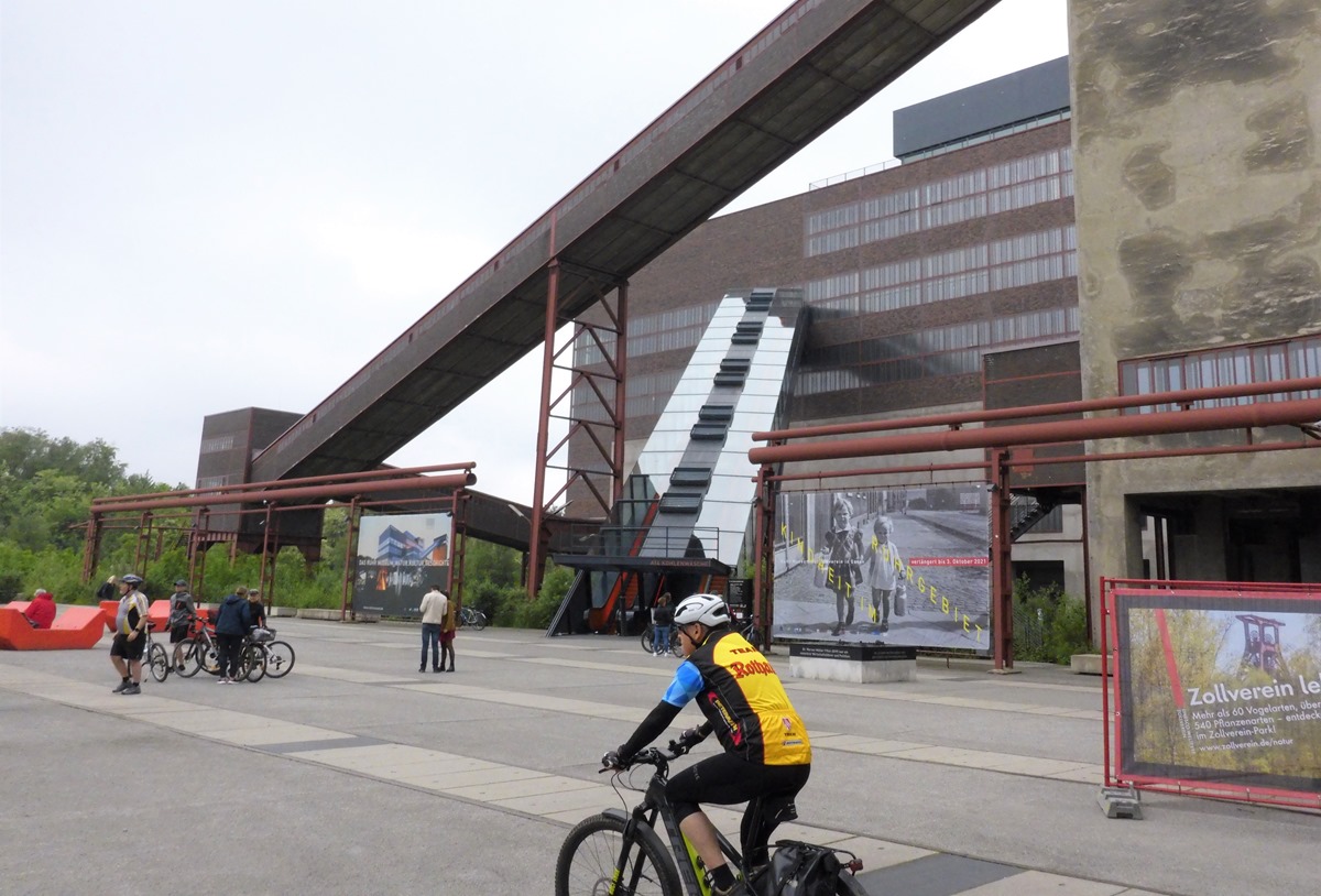 Eine familientaugliche Runde sollte es werden, Britta war aufs Rad gestiegen und absolvierte die Debütrunde in kleiner Gruppe zu viert. Der RS1 war einigermaßen bevölkert und das Wetter betont Radfahrerfreundlich. Die Radmosphäre, als erstes Ziel des Ausflugs, hatte den Dienst noch nicht wieder aufgenommen, also folgten wir dem RS1 um mindestens den Baufortschritt des Jahrhundertwerks der Brücke in Altenessen zu begutachten. In der folgenden Woche wurde sie dann sogar offiziell freigegeben. Einmal eingerollt gab Thomas das Ziel Zollverein aus und wir genossen betreutes Trinken an der Zeche erstmals seit langem ohne Test und Maske (jedenfalls während der Verzehrzeit). Damit hatte Britta die ersten 40 km auf der Uhr und unser Sonntagsausflug unterhaltsam, bekömmlich und geruhsam. km |