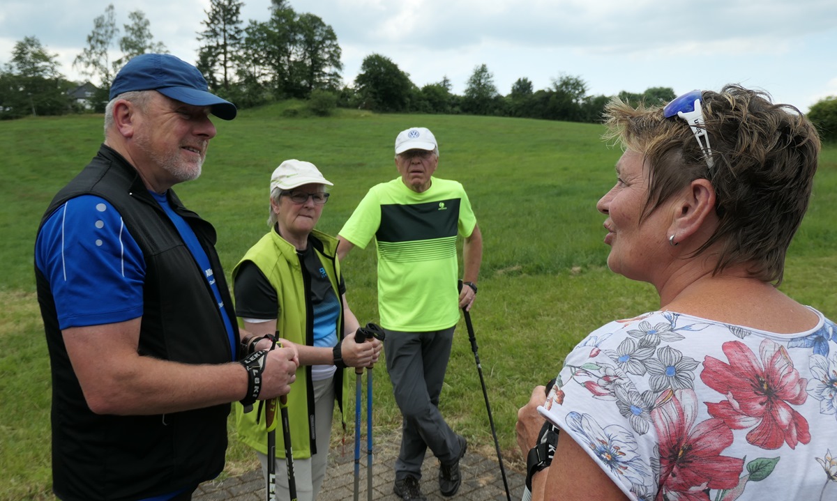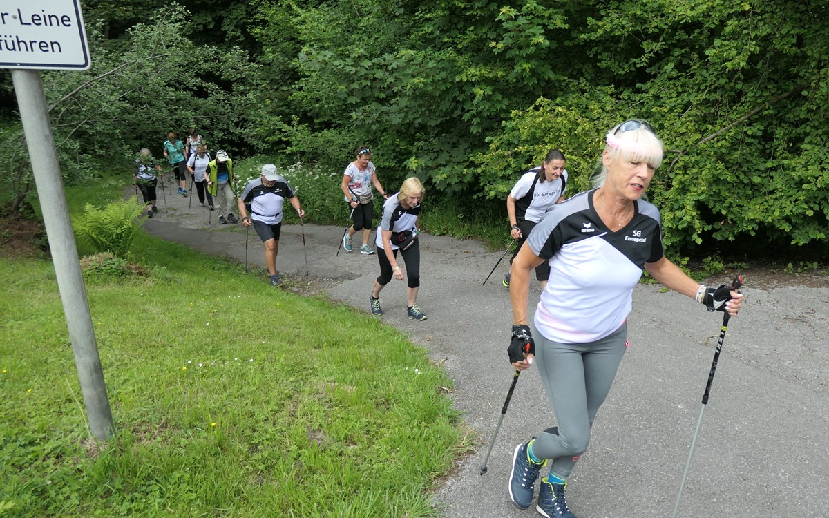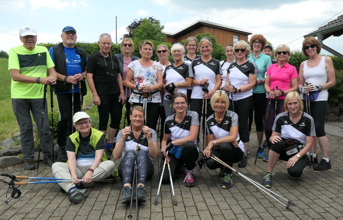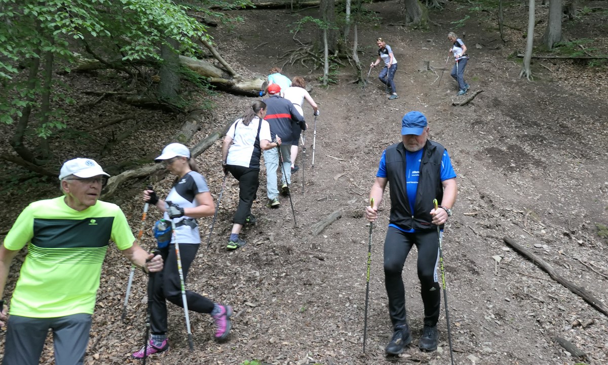 Unter der Woche wechseln wir, mal am Stock durch den Wald oder eben unterwegs mit dem Rad. Wobei wir inzwischen vieles mit dem Rad erledigen und nicht nur sportliche und touristische Ziele verfolgen. An diesem Samstag war es mal anders, wir fuhren mit dem Auto ins Bergische und waren Teilnehmer eines Nordic-Walking-Seminars. Im Bergischen betreiben viele Vereine Skihütten und so eine Hütte betreibt die Ski-Gemeinschaft Ennepetal. Schön und abgelegen, gut ausgestattet bot die Hütte alles was ein Seminar so braucht, sogar eine Wiese, die für Video-Aufnahmen von den Teilnehmern geeignet ist. Wolfram, der Trainer machte es gut. Nordic-Walking, in der Theorie eine dezente Bewegungssportart, die alle Muskelgruppen mobilisieren kann, wenn man es denn richtig macht. Wolfram demonstriert die Abläufe, ließ uns laufen und legte den Finger in die Wunde bei den Defiziten. Aber alles in angenehmer Art. Das Gelände ist toll, aber auch fordernd. Einige Höhenmeter kamen zusammen und wir lernten, dass Walking Stöcke auch im Steilhang von Nutzen sein können. Ein Seminar mit 18 Teilnehmern ist nach eineinhalb Jahren Pause zudem eine besondere Erfahrung. Schönes Wetter, besondere Landschaft und prima Gastgeber – was will man mehr. km