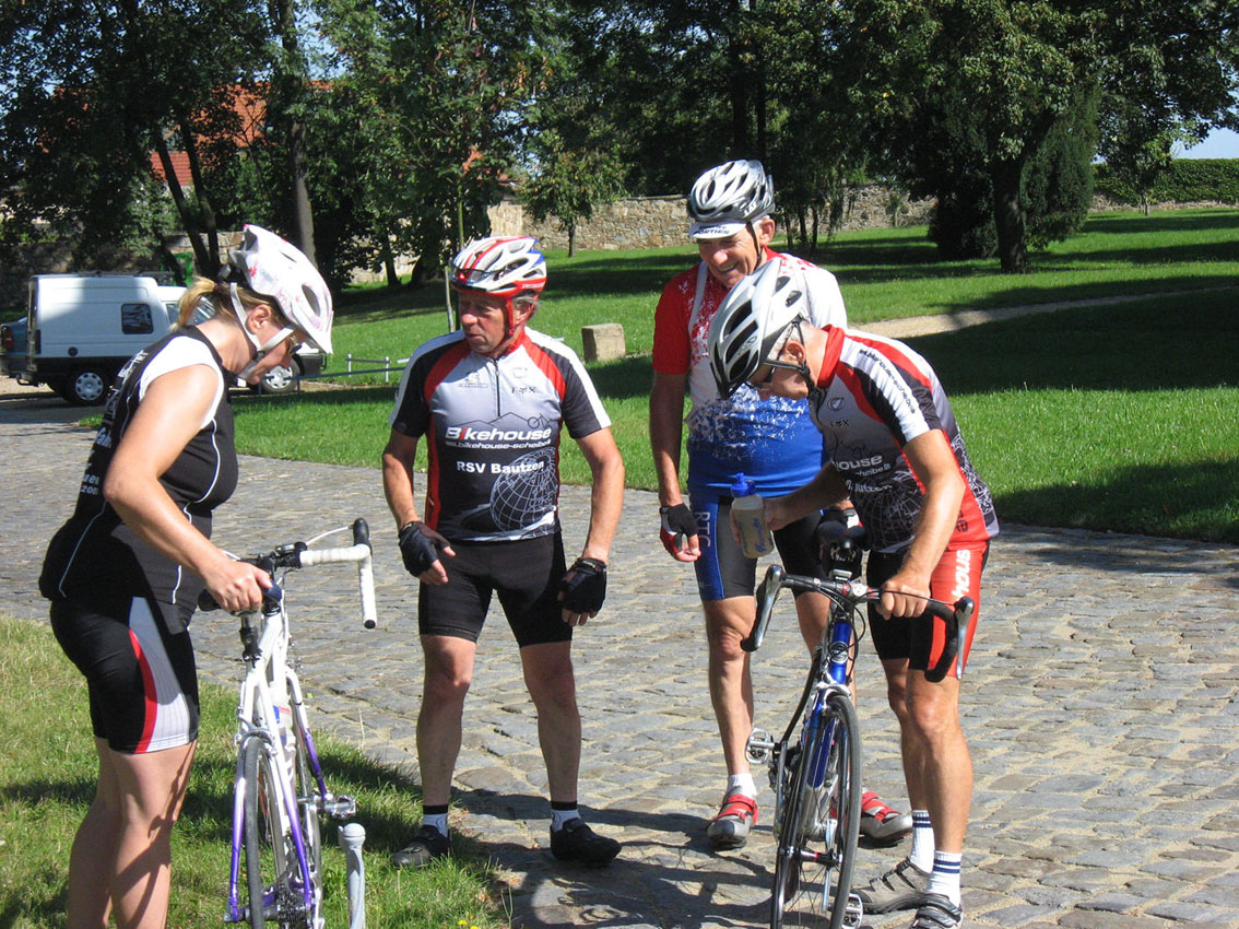 Der Donnerstag wurde der Tag der Königsetappe. Unser Weg führte uns Richtung Tschechien über stets welliges Terrain, der höchste Punkt der Tour lag bei knapp 600 m – eine kleine Tschechische Hütte bot uns Unterschlupf. Getränke und deftige Gulasch- und Wurstportionen wurde zum Spottpreis angeboten. In Oybin, einem idyllischen Städtchen am Rande der Zittauer Berge war die zweite Rast angesagt – Kaffee und Kuchen mundeten vorzüglich, wobei der Bogen, den wir bis Bautzen noch ziehen mussten recht lang wurde – auch wenn wir den Besuch in Zittau auf eines der nächsten Jahre vertagten.