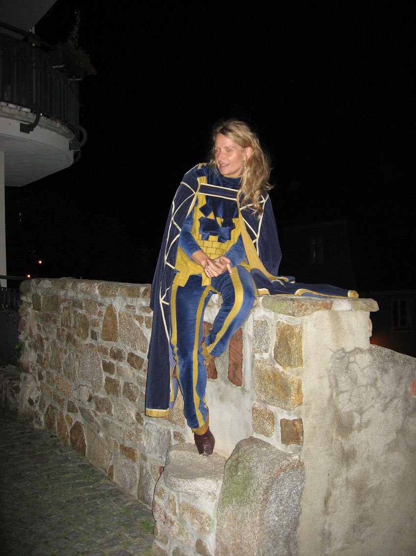 Das Abendprogramm startete im Karasek – traditionelle Gastronomie unter militärischer Bewachung durch den Soldaten Karasek. Gegen 19Uhr war dann die heitere Stadtbesichtigung angesagt, doch der Stadtführer schien uns vergessen zu haben. Den Handys sei Dank, trudelte er mit 1-stündiger Verspätung doch noch ein und stellte uns Stadt und Geschichte wortreich dar und versorgte uns mit „Rotem“ aus steinernen Kelchen. Er war eigentlich eine „sie“ –nach eigener Definition jedoch ein Knappe (immerhin ca. 750 Jahre alt) und also nicht von edlem Blut.